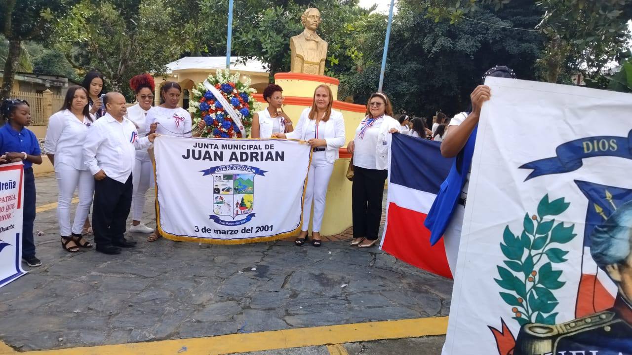 En un acto llevado a cabo en el parque central del Distrito Juan Adrian se llevó a cabo las celebraciones del natalicio de uno de los seres más grande que ha parido la tierra nuestro insigne precursor de la patria Juan Pablo duarte!! acto celebrado con la presencia de las autoridades que componen nuestro Distrito!!