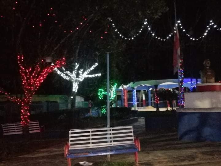 Así lucen las luces navideña en Juan Adrián.
