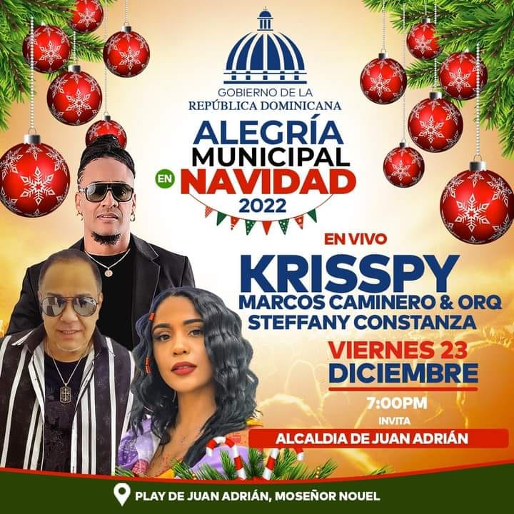 Gran fieston para todos los municipes de Juan Adrian, Aumentamos de 2 a 3 los artistas que estarán en tarima en el Gran fieston de navidad este viernes 23 de diciembre en el cruce de Juan Adrián.